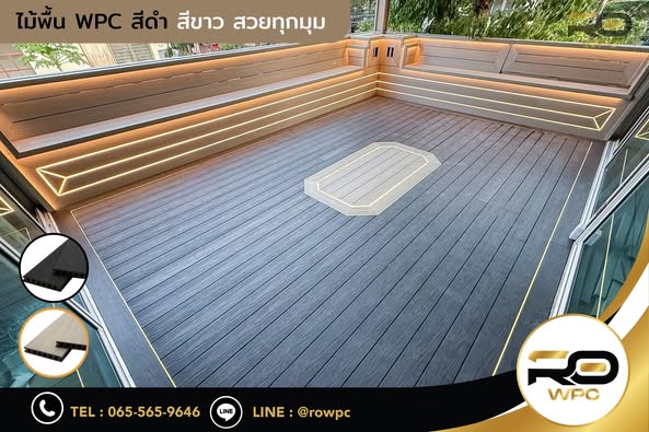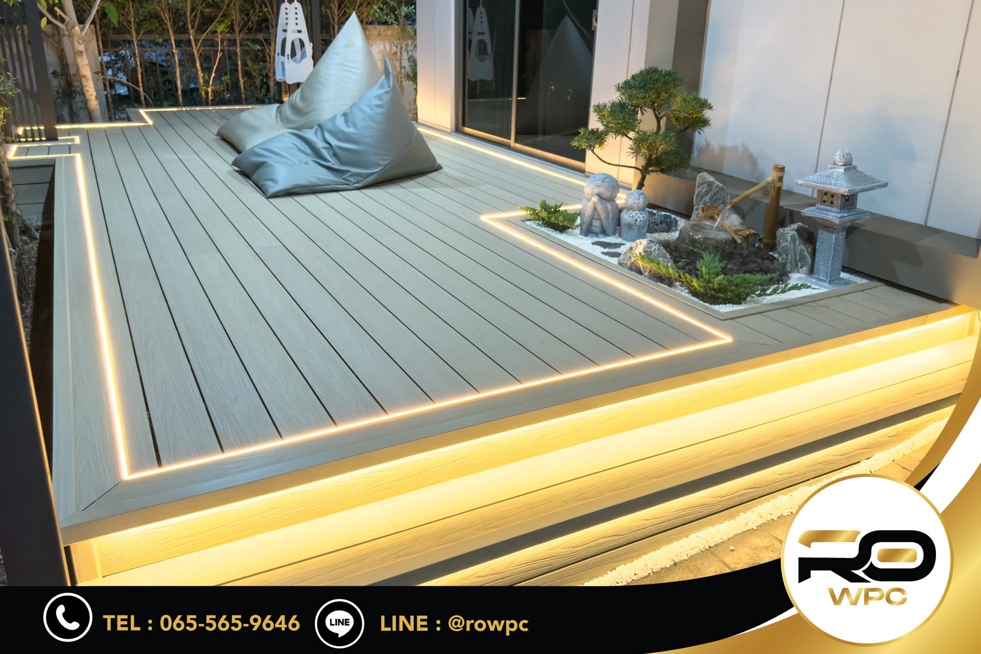 งานติดตั้งไม้พื้น RO WPC สีดำ พื้นที่นั่งเล่น