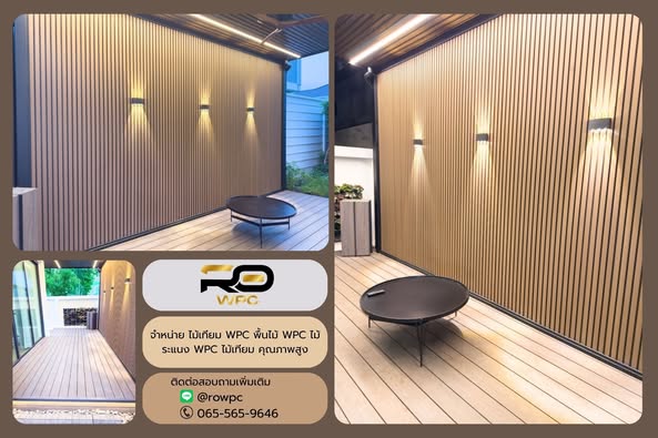 งานติดตั้งไม้ระแนงเซาะร่องและไม้พื้น RO WPC สีโอ๊ค
