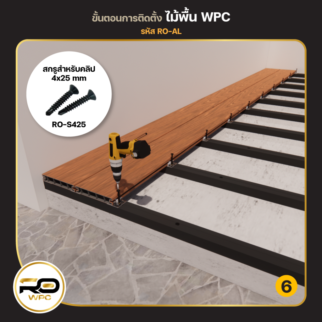 ขั้นตอนการติดตั้งไม้พื้นอลูมิเนียม รหัส RO-AL
