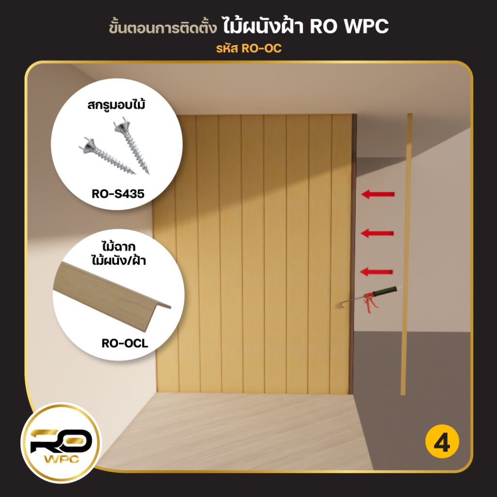 ขั้นตอนการติดตั้ง ไม้ผนัง/ฝ้า รหัส RO-OC