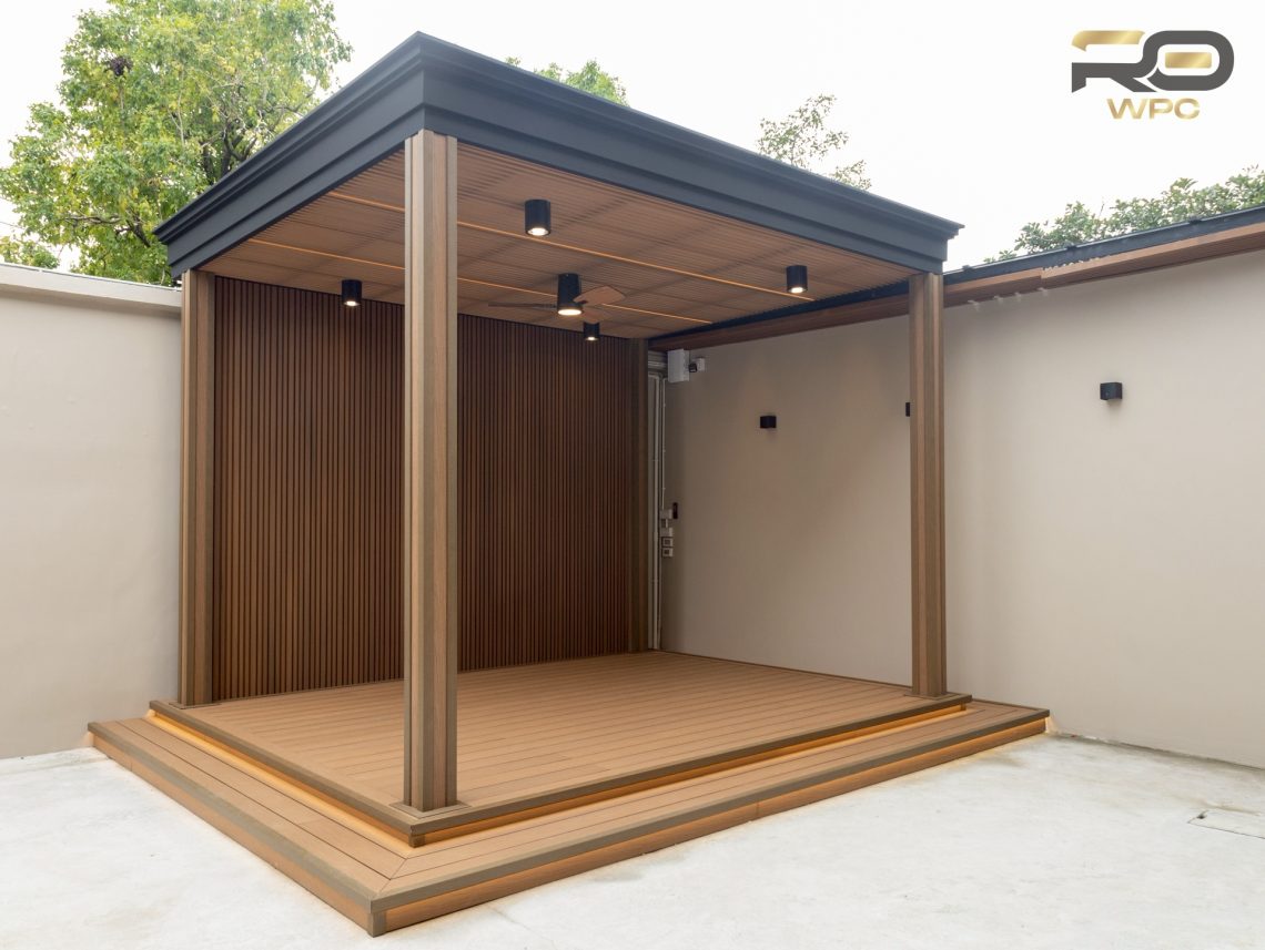 ตัวอย่างงานติดตั้งต่อเติมพื้นที่ข้างบ้านด้วยไม้พื้น WPC และ ระแนงกล่อง 2×1 RO WPC