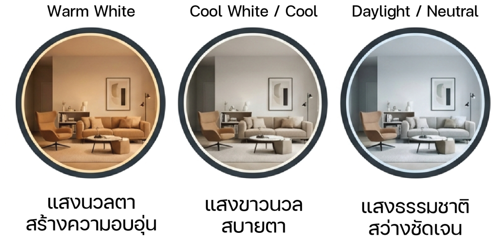 - ปรับอุณหภูมิแสงได้ 3 ระดับ Warm / Neutral / Cool