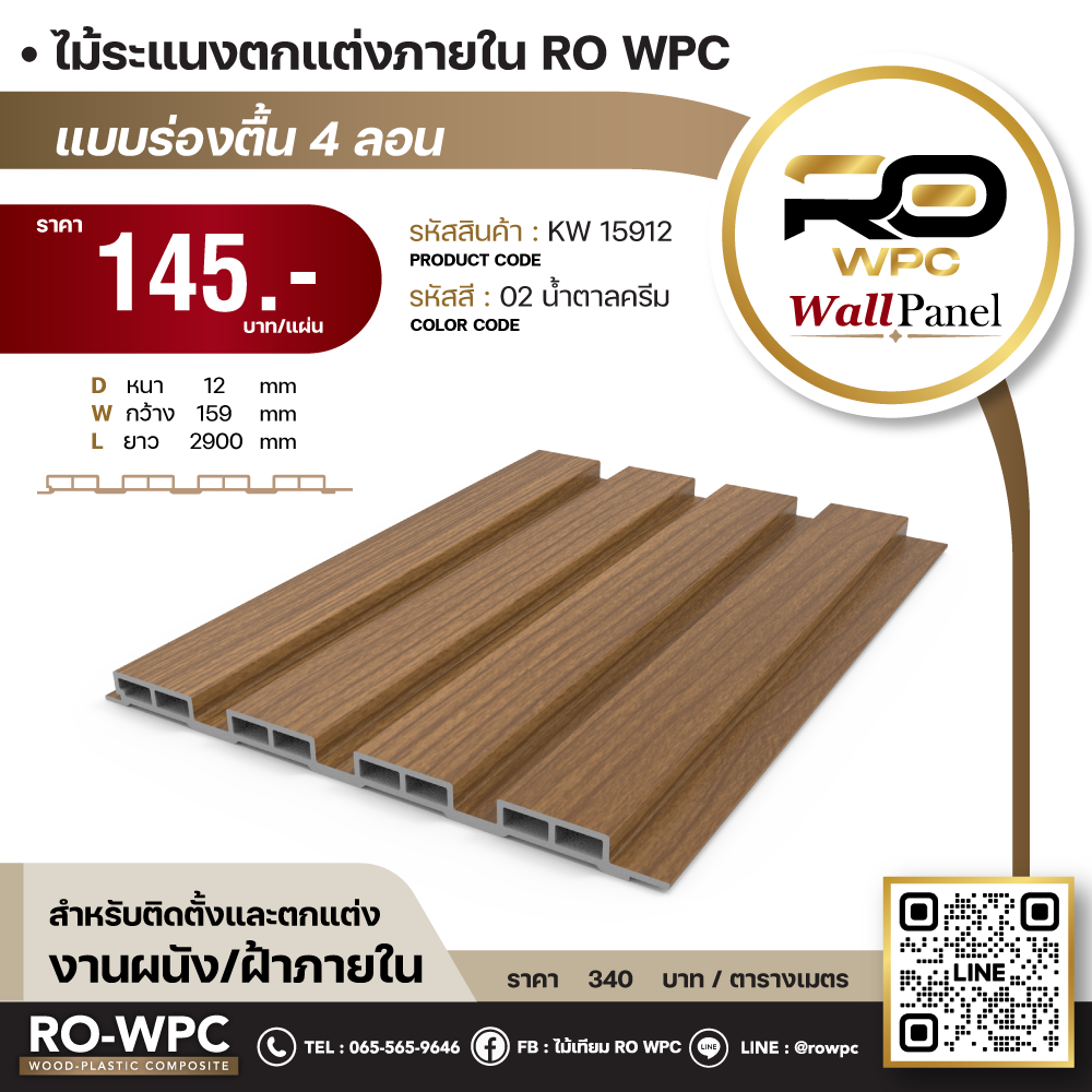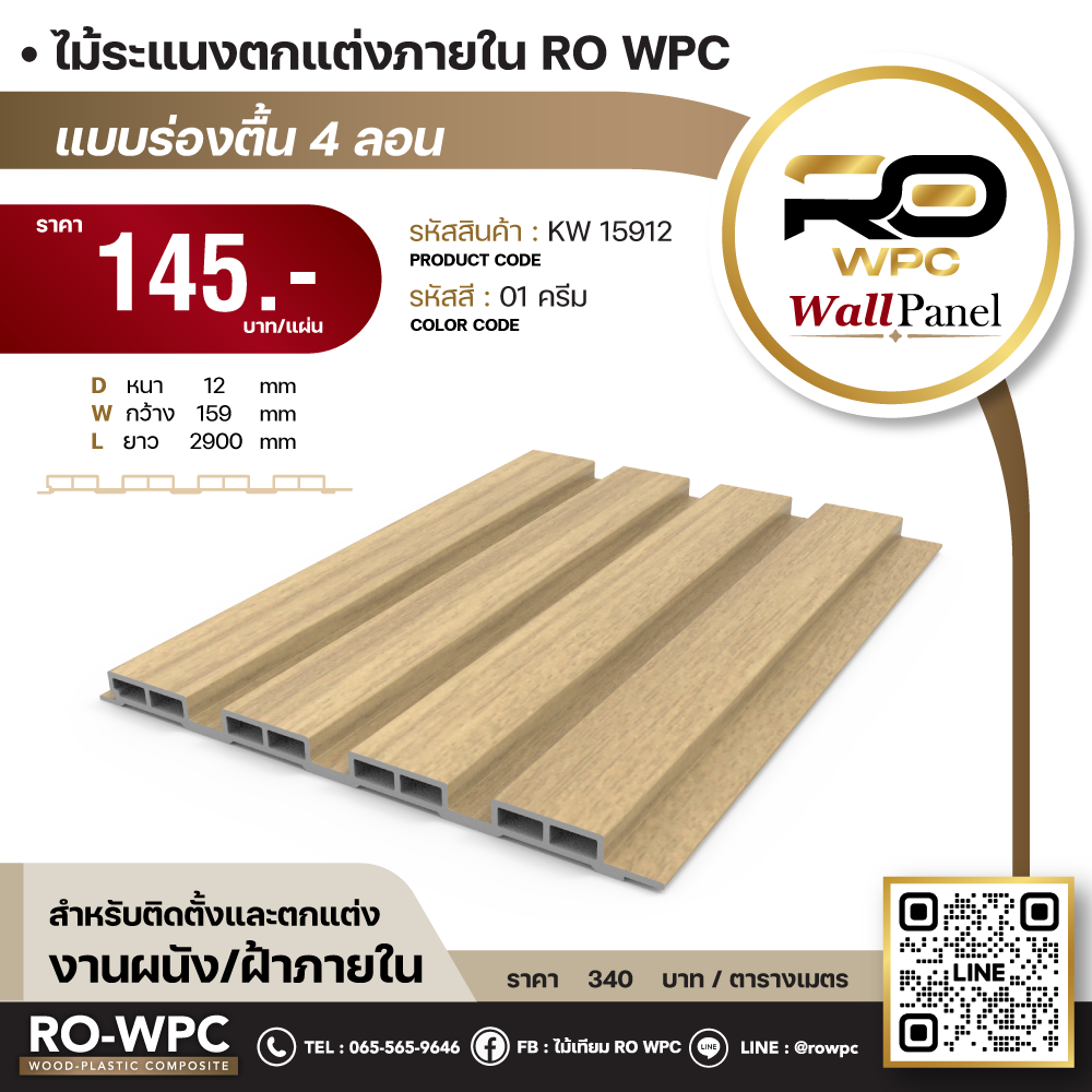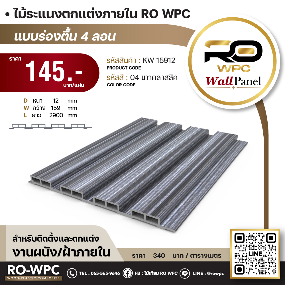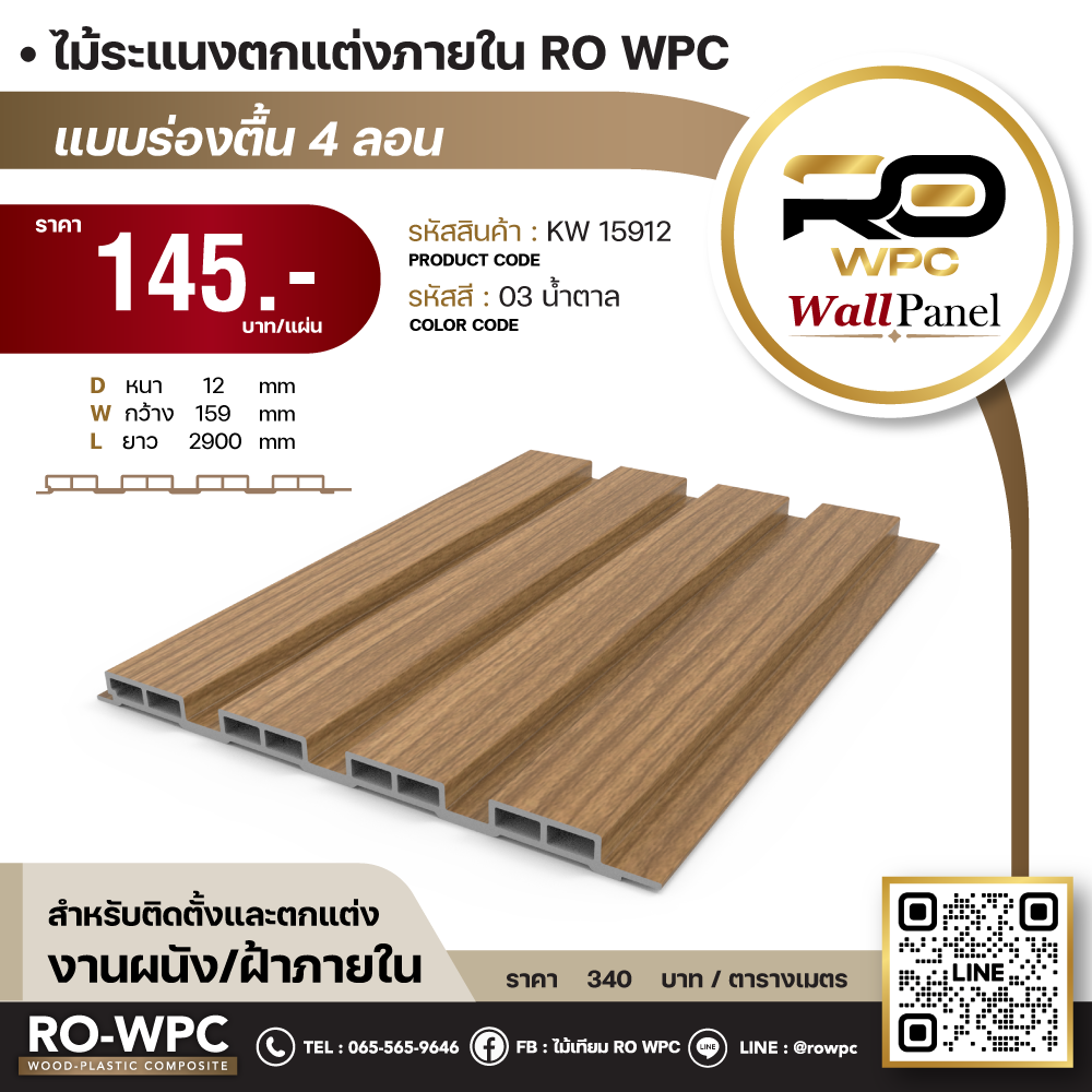 - ชื่อสินค้า ไม้ระแนงตกแต่งภายใน RO WPC แบบร่องตื้น