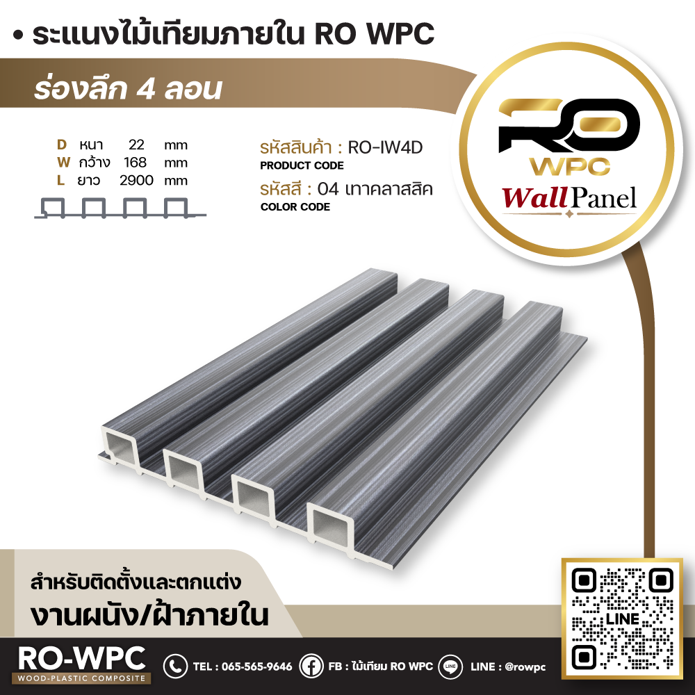 ระแนงไม้เทียมภายใน ร่องลึก 4 ลอน สี 04 เทาคลาสสิค